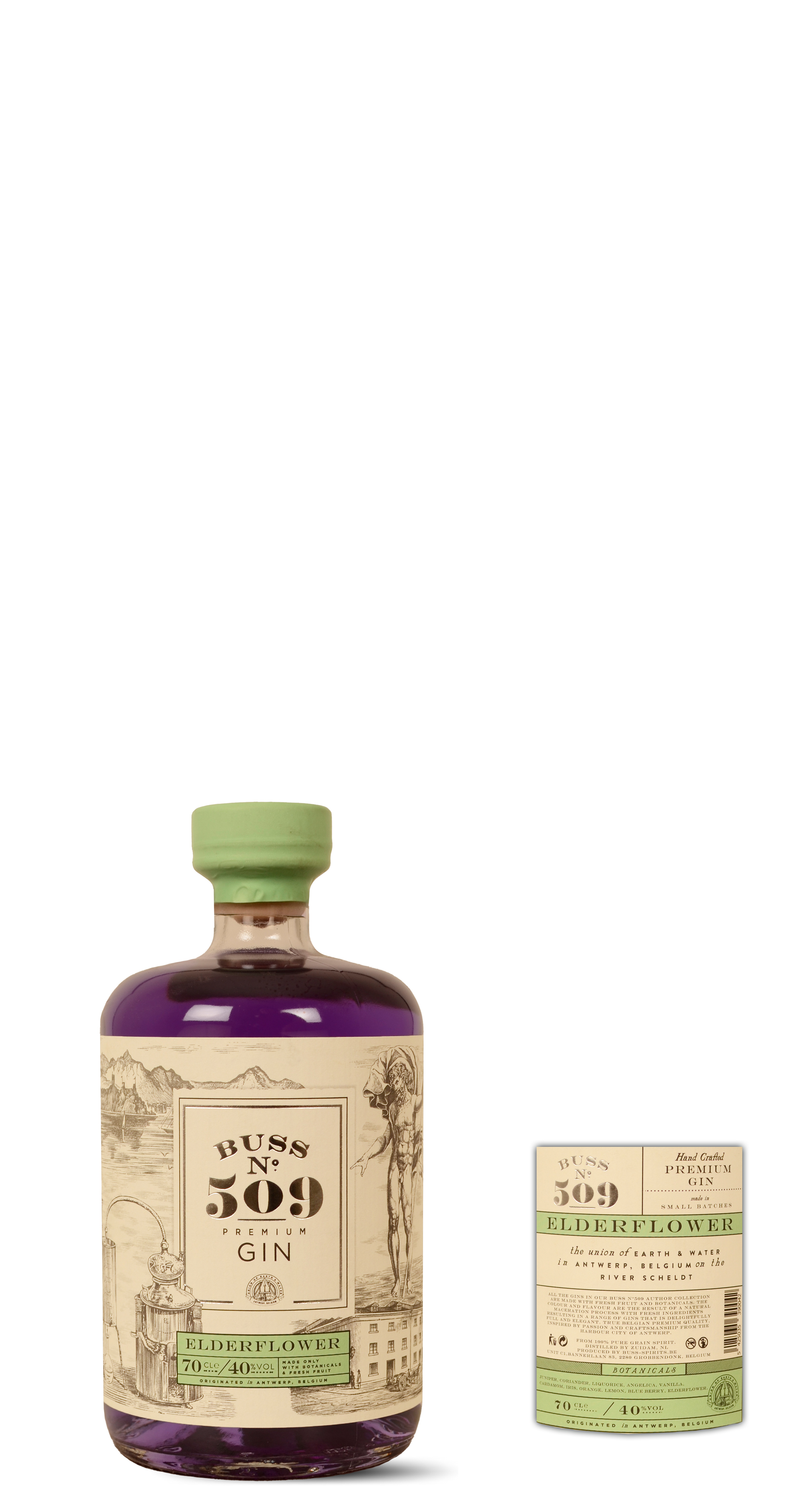 BUSS N°509 White Rain is our third gin on the market, made with a rich blend of herbs and spices and of Belgian origin, inspired by passion and knowledge. Originating in Antwerp, we have blended the finest herbs and spices with a premium spirit, to create a gin that is beautiful and complex in taste. Buss N°509 is a craft distilled product. No machinery has been used, and no additives (such as sugar, colorants or artificial flavors) have been added. 50% alcohol, clear transparency color, 100% pure grain, 100% fresh plants, herbs and fruits: juniper, coriander, liquorice, angelica, vanilla, cardamom, iris, orange, lemon, verbena, marjoram.